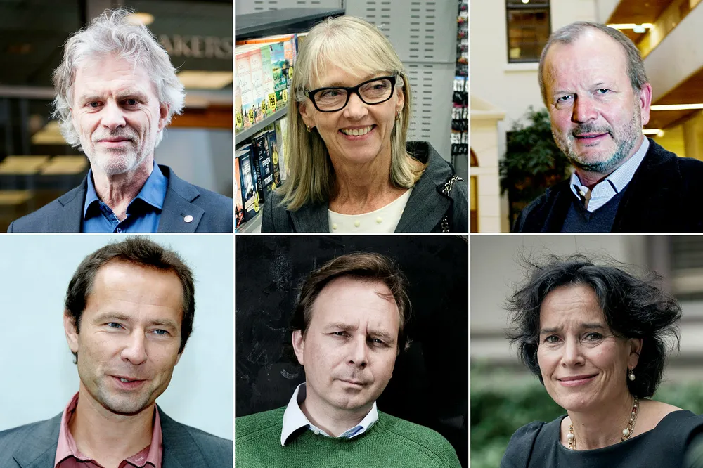 Konsernsjef Tom Harald Jenssen, øverst fra venstre, og forlagsdirektør Karin Mundal i Cappelen Damm skal vitne i forlagenes sak mot Konkurransetilsynet. Det samme skal tidligere Gyldendal-sjef Geir Mork og Gyldendal-direktør Einar Ibenholt, samt Aschehoug-sjef Mads Nygaard og Aschehoug-direktør Kari Spjeldnæs.