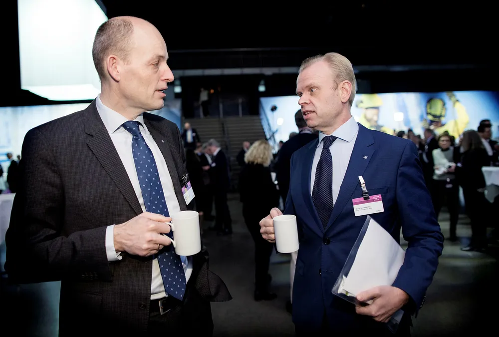 Yara skuffer stort i fjerde kvartalIndustrigiganten lander langt under forventningene.IndustriYaras Torgeir Kvidal (til venstre) og Svein Tore Holsether leverer under forventningene i fjerde kvartal. Her under NHOs årskonferanse tidligere i år. Foto: Ida von Hanno BastCecilie Langum Becker