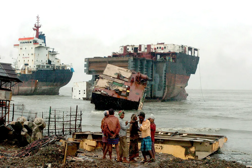 Det stilles stadig flere og strengere krav til hvordan skip skal resirkuleres. Disse kravene blir ikke bare stilt av banker, investorer og kunder, men kommer også fra rederibedriftene selv, og andre interessenter. På denne måten presses aktører til å skrape skip på en måte som ikke setter liv, helse og miljø i fare. Her fra stranden Chittagong i Bangladesh hvor skip ligger klar til opphugging.