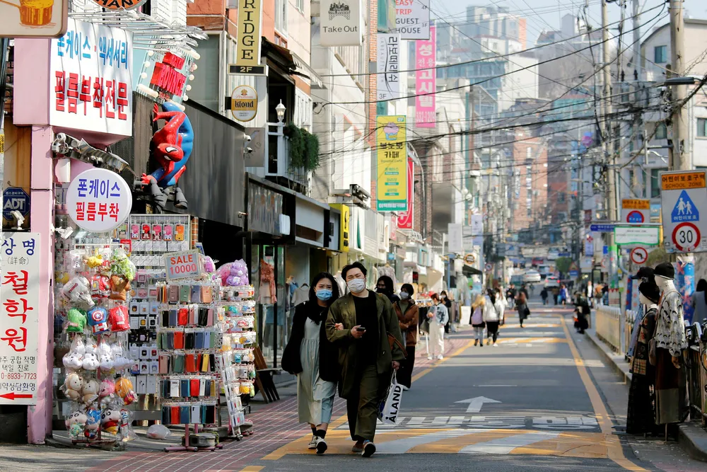 Tallenes tale er klar: 174 er så langt døde i Sør-Korea, mens Spania med litt mindre befolkning har 10.000 døde, skriver Erik Solheim. Gatebilde fra Seoul fredag 3. april.