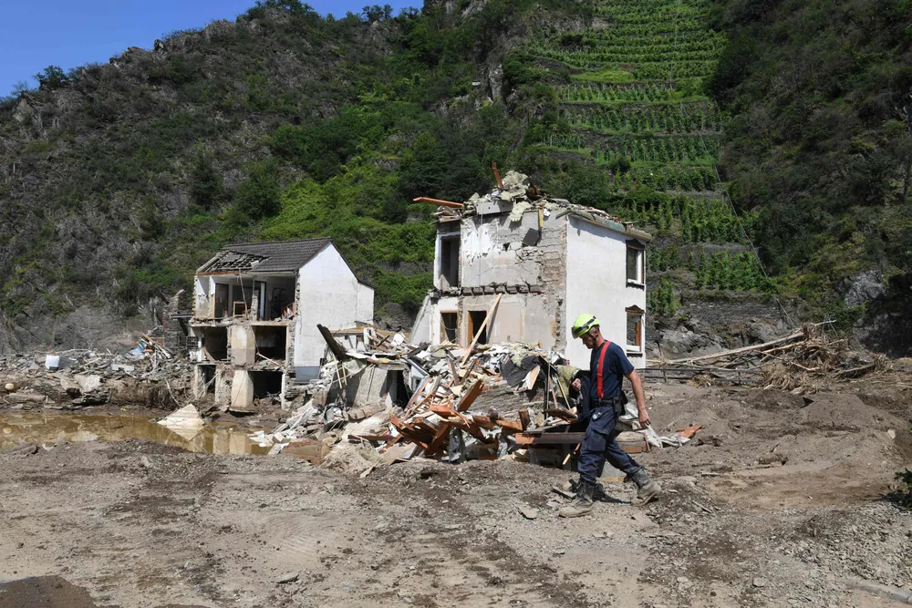 Grønn forsiktighetTysklands Grønne vil ikke politisere ekstremværet. Utsikten til makt tynger allerede.KommentarHjelpearbeid etter flommen i Mayschoss, Rheinland-Pfalz, Tyskland. Grønne politikere vil ikke være i veien.Foto: Christof Stache/AFPKjetil WiedswangKommentator i Dagens NæringslivFølg meg