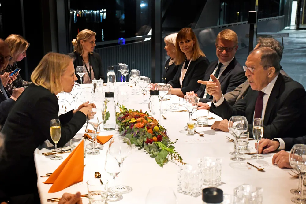 Utenriksminister Anniken Huitfeldt (Ap) og den russiske utenriksministeren Sergej Lavrov i samtale over bordet i fjor høst, før Russlands angrepskrig på Ukraina. Norge bør lete etter møteplasser på lavere nivå, skriver artikkelforfatterne.