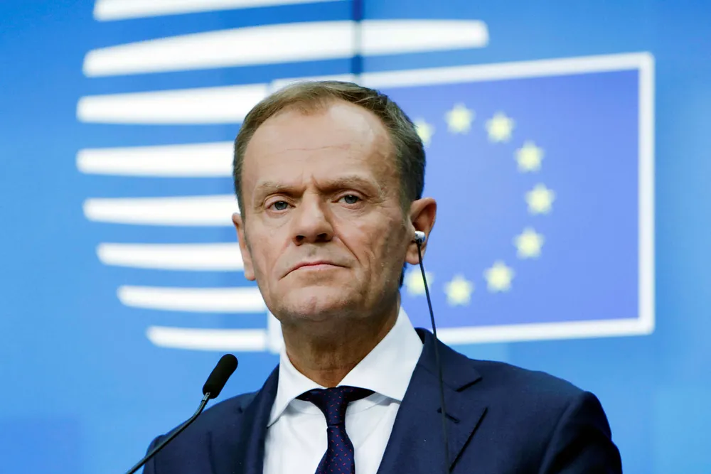 DN mener: Det finnes også en klok DonaldEgoismen seiler med patriotismen som bannerLederEU-president Donald Tusk, som snart går av, satte et solid punktum da han holdt tale i FN denne uken.Foto: Aris Oikonomou/AFP/NTB ScanpixLeder DN