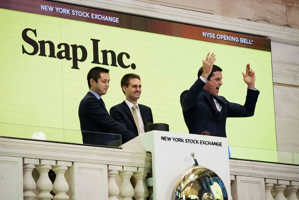 Snapchat tapte 2,2 milliarder dollarSelskapet skuffer med sin første kvartalsrapport etter børsnotering.MedierSnapchat-gründerne Bobby Murphy (f.v.) og Evan Spiegel var tilstede da Snap-aksjen ble børsnotert på New York Stock Exchange i begynnelsen av mars. Foto: Drew Angerer/AFP/NTB ScanpixMarcus HusbyEliese Laustsen