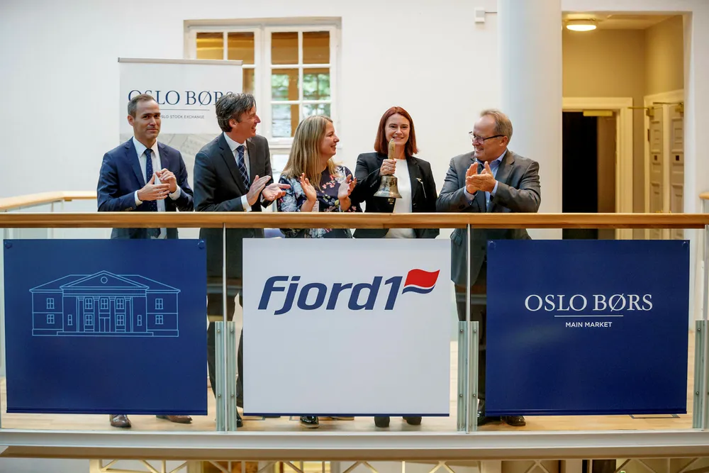 Fjord1 innfører elbil-takst på ferger fra 1. marsEl-bileiere må belage seg på å betale.ReiselivFergeselskapet Fjord1 ble børsnotert tirsdag 15. august. Økonomi og finansdirektør Anne-Mari Sundal Bøe ringer i bjella på Oslo Børs for å markere noteringen.Foto: Cornelius Poppe / NTB scanpixTDN FinansStian Øvrebø Johannessen