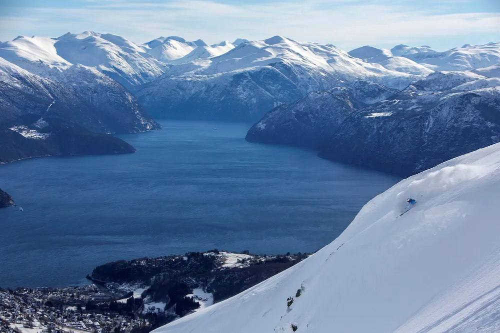 Fire perfekte frikjøringslinjerHvordan finner de beste skikjørerne de beste linjene? Her er DNs guide til en strålende nedtur.SkisportMed storslagen utsikt mot fjorden nyter Karsten Gefle lett snø nedover Alperittløypa. Foto: Thomas T. KleivenThomas T. Kleiven