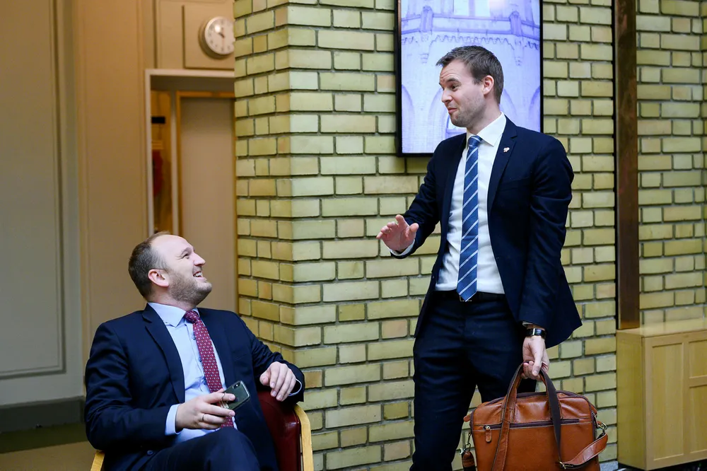 Klok som en … eller sleip som en …?Kjell Ingolf Ropstad kjemper som en bjørn for skillet mellom mennesker og dyr.SkisseKrF-leder Kjell Ingolf Ropstad (til høyre) møtte samferdselsminister Jon Georg Dale (Frp) i Stortingets vandrehall før de skulle inn i spontanspørretimen.Foto: Skjalg Bøhmer VoldKjetil B. AlstadheimPolitisk redaktør i Dagens NæringslivFølg meg
