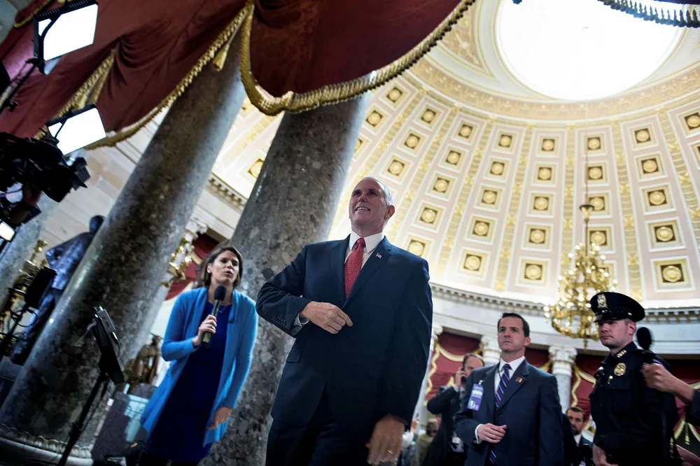 Representantenes hus i USA har vedtatt skattereformRepresentantenes hus har vedtatt en ny versjon av Donald Trumps skattereform.UtenriksVisepresident Mike Pence på vei til å stemme for skattereformen i Kongressen i Washington. Foto: Brendan Smialowski/AFP/NTB ScanpixNTB
